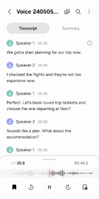 [Interview] Record yourself and another person’s voice using the microphones on the top and bottom of your phone. It shows the waveform for each voice, which you can play back separately.