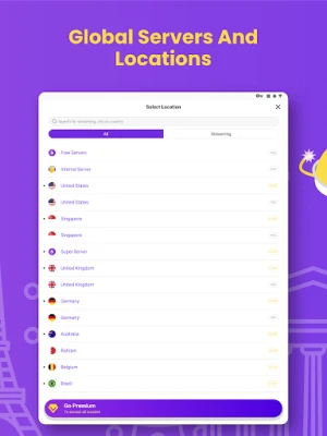 * Use servers of 6 main countries with no charge(with ads) including United States, Canada, United Kingdom, Germany, Singapore and India