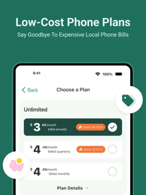 Benefit from an integrated call recorder to capture important conversations, saving them within the app for future playback. Access your call history, billing details, phone number, and account information conveniently from the app's home menu. Enjoy 24/7 customer support for any assistance you may need.
