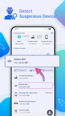 - Identify Device Types: Get detailed info on each device, including its type (smartphone, laptop, etc.), IP address, and vendor.