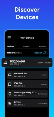 Wifi Analyzer is the ultimate tool for analyzing and optimizing your WiFi network. With this app, you can quickly and easily discover devices connected to your network, perform a speed test to check your upload and download speeds, and access detailed information about your network, including your local and public IP, information about your internet service provider (ISP), and latency (ping) information.