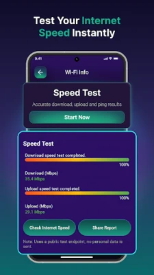 Measure your internet performance accurately with the built-in speed test. Check download speed, upload speed, and ping to understand your network quality. The speed test tool is optimized for stable and consistent results, helping you evaluate performance at different times of the day or different WiFi locations around your home or office. If your connection feels slow, the analyzer helps you diagnose issues quickly.