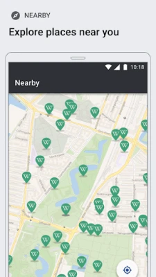 Places: See Wikipedia articles as markers on a map, whether it's around your location, or any place in the world.