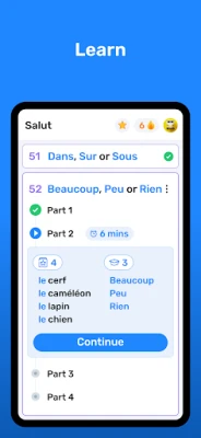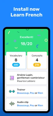 A learning process designed for you that is both easy and guided: You’ll feel like you’re learning more and more French every day. Every sentence, exercise, review, and reading has been carefully selected for you.