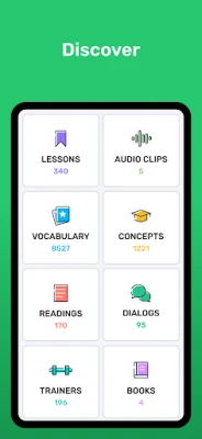 Lesson structure: Concepts are introduced progressively throughout the course. Only concepts that are explained in the course are used to create the content (sentences, exercises or readings).