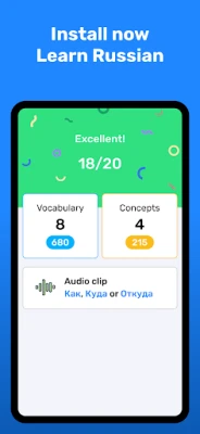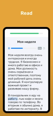 A learning process designed for you that is both easy and guided: You’ll feel like you’re learning more and more Russian every day. Every sentence, exercise, review, and reading has been carefully selected for you.