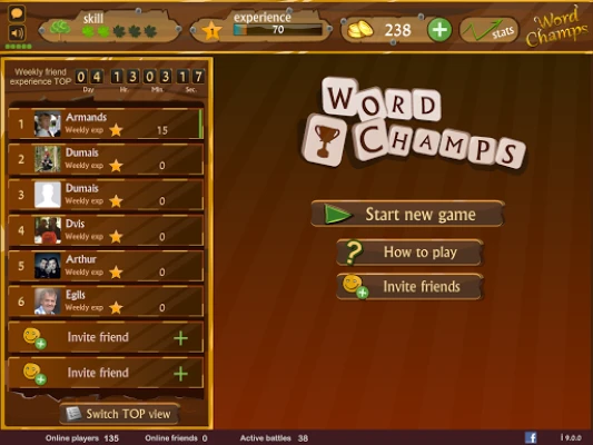 Gameplay: each user is given the same 20 random letters where each letter has some value assigned. In 40 seconds you need to come up with one word, which gives you as many points as possible. You can use no more than two letters from each colored block. It is up to you what strategy you choose to win the game. The one with the highest word score wins. Word Champs is a great game to practice spelling skills and build your vocabulary.