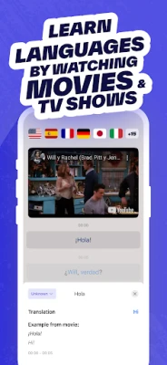 Enjoy an immersive language learning experience with over 15,000 movie clips, making it easy and fun to learn languages through the shows you already love.