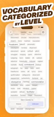 Vocabulary categorized by difficulty (A1–C2)
