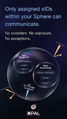 Members of a Sphere cannot be found, contacted, or reached by anyone outside. Even other xPal users cannot interact unless assignedto the same Sphere.
