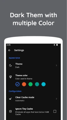 ✓ Analyze app's cache ✓ Clear cache of apps either manually or automatically ✓ History ✓ Detailed history ✓ Floating dock for easy launch