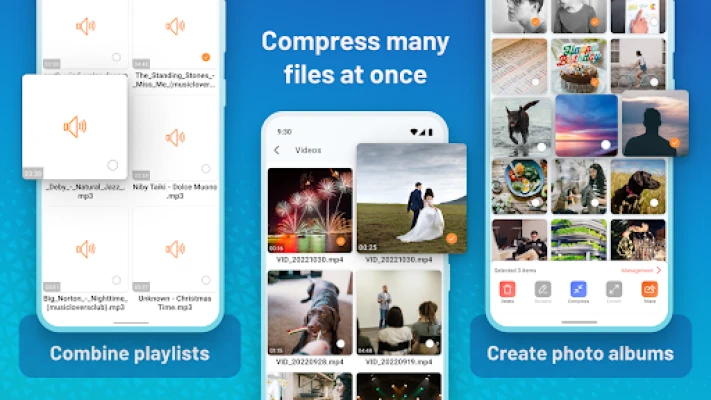 ๐ Access to various file types, including DOCX, XLSX, PPTX, PDF, PNG, JPG, MP3, MP4, APK, TXT, etc., helping users compress various documents, images, videos, audios into the same convenient file for easy sending.