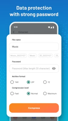 Data security: Zip Extractor - Unzip & Unrar supports compressing and decompressing with passwords. As a result, the important and sensitive files will be totally protected.