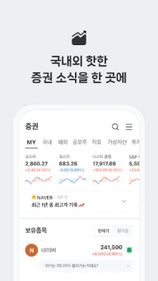 - 국내/외 실시간 주식 가격, 주식 시장 흐름, 환율, 가상자산, 공모주 청약 정보 등 주식 투자에 필요한 모든 정보