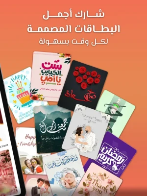 سواء كنت تبحث عن بطاقة صباح الخير أو تهنئة بعيد ميلاد، دعوة زفاف، استقبال مولود جديد، أو مشاركة تهنئة بمناسبة العيد، فإن تطبيق "بطاقات" يقدّم لك مكتبة ضخمة من القوالب الجاهزة والمتجددة باستمرار لتناسب جميع الأذواق والمناسبات.