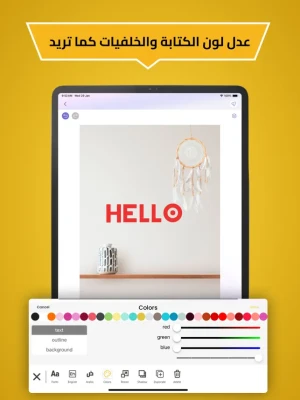 التطبيق ليس مجرد أداة تعديل صور فقط بل هو مخزن ضخم ل قوالب التصميم المتنوعة تساعدك في انتاج أفكار ل تصاميمك. خطوط التطبيق مصنفة لتتيح لك اخيار الخط المناسب لتصميمك. عشان ما يضيع تعبك كل التصاميم يتم حفظها بشكل تلقائي ليتسنى لك الرجوع اليها وتعديلها في اي وقت. نقوم بتحديث مكتبة الصور والملصقات بشكل مستمر ومواكب لجميع المناسبات المحلية والعالمية قبل حدوثها.