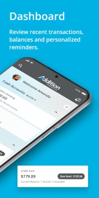 The Addition Financial app puts convenient and secure banking at your fingertips. Managing your money 24/7 at home or on the go has never been easier. Access powerful financial tools to quickly check your balances, make transfers to and from your accounts, make mobile deposits, and pay bills, with just a few clicks.