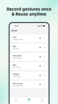 Record Mode: Capture and automate complex gestures—taps, swipes, and long presses—for easy playback and efficient task repetition