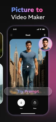 • Photo to video generator feature that creates AI-generated videos using your photos