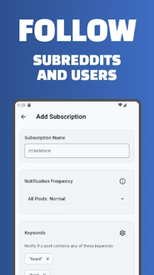 - Add/remove/mute subreddits or users at any time to start/stop seeing notifications