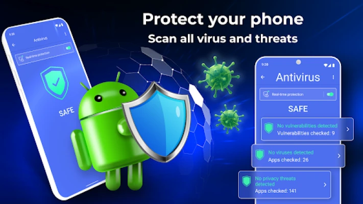Antivirus for Android is a multi-function and convenient app that will help you protect and clean your device! Antivirus for Android – reliable protection of your device against viruses, ensuring the security of your device's and personal data.
