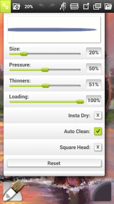Each tool includes settings that mirror real world properties such as Paint Thinners, Pencil Softness, and other familiar properties. The app includes a range of default presets for every tool, and you can easily create your own specialized custom presets. It also supports pressure data from the Samsung S-Pen to add an element of natural expressiveness to your paint strokes.