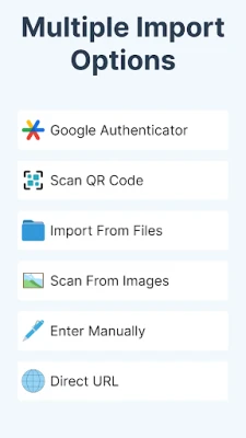 Easily import your existing 2FA accounts from Google Authenticator, Microsoft Authenticator, Authy, screenshots, migration files, or other authenticator apps. Migration takes just a few taps.