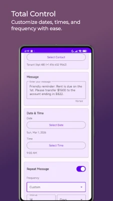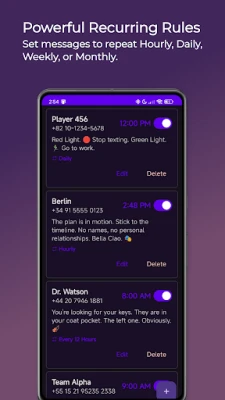 🎉 Birthdays & Anniversaries: Set up yearly recurring messages so you never miss a special date.