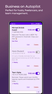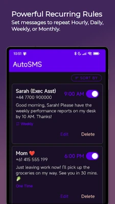 Forget to send that birthday text? Need to remind your team about the weekly meeting? Let AutoSMS do it for you.