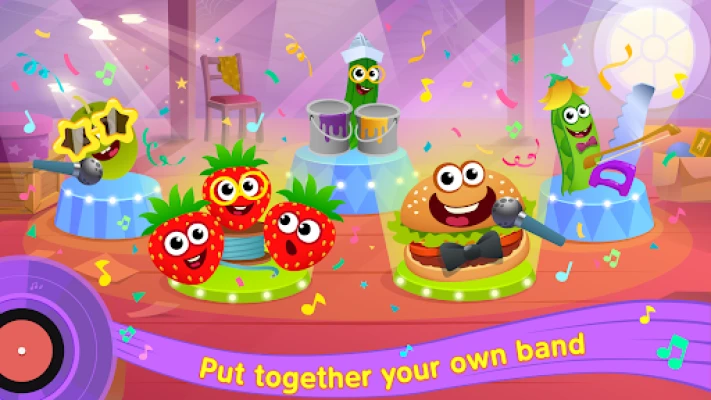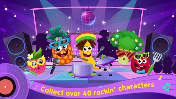 Rock on! And on, and on in these toddler music games and fun games for kids. Play more of the funny food activities and preschool games for free in the app to unlock more fruits, veggies, and instruments. Kids piano games like these let you get as many funky musicians as possible and put together the grandest concert anyone's ever seen! ⚡
