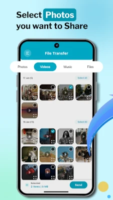 Transfer photos and videos over Wi-Fi for quick, high-speed sharing. Select your preferred network and send with ease.