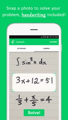 With millions of Cymath.com users worldwide, the Cymath math problem solver app uses the same math engine while letting you solve problems on the go! Just enter a problem from your math homework, and let Cymath solve it for you step-by-step! We provide algebra as well as calculus help.