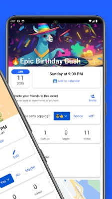 RSVP and event planning should be easy. With dateit you don't need an account or password to join events. Share invite links with your guests so they can RSVP to your event. Post, comment and collaborate; partying has never been easier!