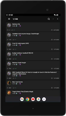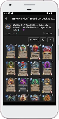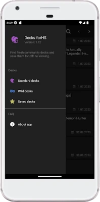 You can find more than 450 000 different decks in this app for both Standard and Wild games mode. In the preview of each deck shown its Title, game format, dust needed to craft it, amount of views and creation date.