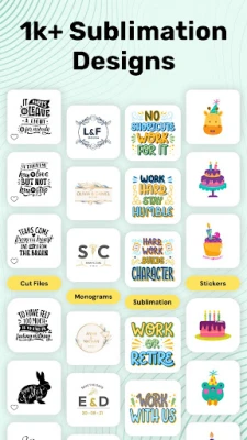 You can browse and explore a rich library of well-crafted shapes, SVGs, Cut files, Fonts, Sublimations, Shapes, Labels, monograms, Stickers and Logos for your unique design artworks as well as T-shirt Designer with our sublimation designer app.