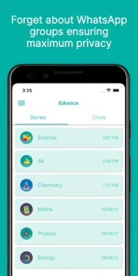 In addition to stories, where a flow of notifications is received, the app also features chats and groups. Unlike stories, these offer two-way messaging, which makes them ideal to work in groups and facilitate the information exchange with students and families.