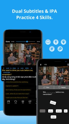 • Watch videos with bilingual subtitles (English-Vietnamese) and IPA phonetics.