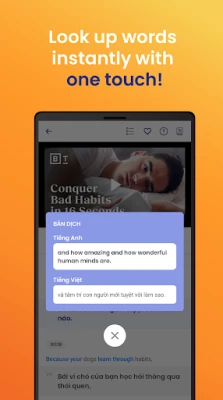 - Instantly look up words by simply touching them for quick access to the dictionary.