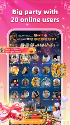 2.Largest Parties: Themed chat rooms can support up to 20 people speaking on the microphone at the same time.