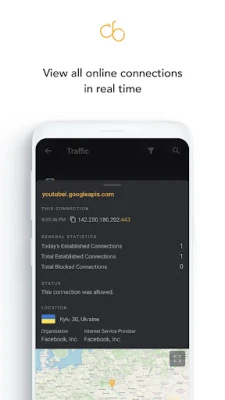 Firewall No Root uses Android’s official VpnService API to filter network traffic locally on your device. The app creates a local connection to itself, routes traffic through the firewall and then decides whether to allow or block it. Your traffic is not tunnelled to a remote VPN server and is not forwarded to third‑party servers.