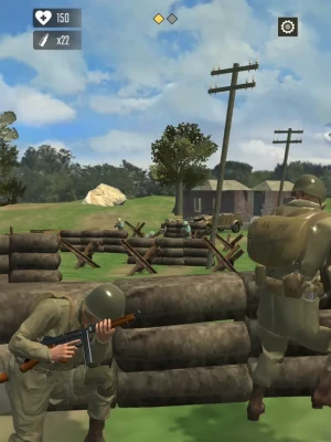 Frontline Heroes: WW2 Warfare immerses you in the sights and sounds of World War 2, offering detailed graphics and a realistic world war shooting gaming experience.