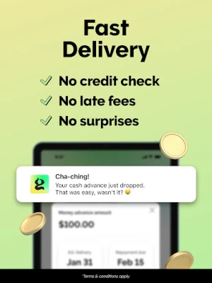 * Terms & conditions apply. Qualification based on eligibility & verification. Advance amounts range from $25 to $300, with no guaranteed amount. Average advance is $77 from 07/24 to 09/25. Same day delivery available with a $2 to $15 fee. Grant Cash Advance Plus subscription $9.99/mo. Cancel anytime. Paid endorsement. Promotions vary by eligibility; daily cash out limits apply. Redemption processing time may vary. Some offers may incur costs - see website FAQ for full terms. Graphics for illustrative purposes only. Full suite of products and services not available in CT, DC, MD, KS, NV, RI, SC, and WI. Please review Grant's Customer Agreement for further information and full terms and conditions.