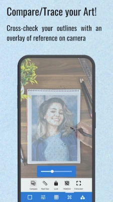 - Compare or Trace your artwork using your camera with reference image overlay on the screen.