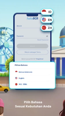 Access haloBCA in the language that suits you best, including Indonesian, English, and Mandarin.