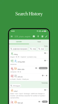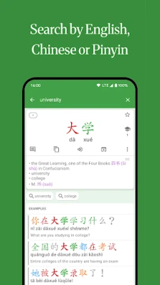 Look up Mandarin Chinese words offline using English, Pinyin or Chinese characters (Hanzi) in a clean, intuitive, yet powerful interface.