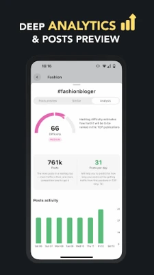 Hashtag Generator Reachtags is an ai-based app to get free instagram followers by adding hashtags to Instagram posts. Few taps to get likes, grow posts reach 500%+, get into reel trends and get insta followers from tops and recommendations. Thanks to a unique algorithm for selection and a huge base of 18m of #hashtags, any influencer will be able to create effective tags sets. No need to buy ig followers anymore, now you can get targeted fallowers with our free hashtag generator. The app will show detailed statistics and posts preview for each hashtag.