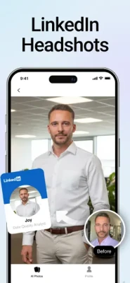 Professional Business Headshots — No Photo Shoot NeededGet studio-quality headshots in seconds. No need to book a photographer or attend a photo shoot. Simply upload one front-facing photo, and our advanced AI will generate professional images perfect for LinkedIn, Indeed, Glassdoor, and more.