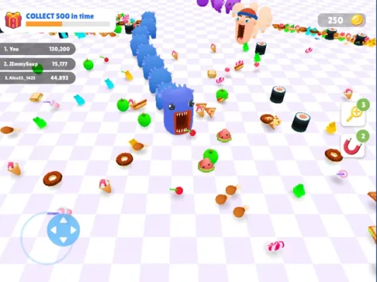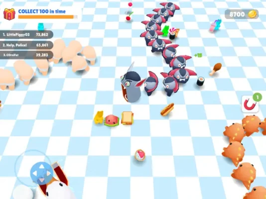 In addition to tasty treats, many boosters will be waiting for you in the arena. Speed up, use a food magnet, and become invincible! make your task to win the battle royale match much easier Collect all the boosters to get various bonuses and take down all enemies!