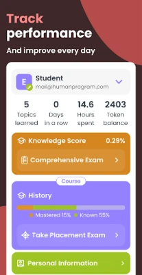 Hyooman Program uses an adaptive learning algorithm to quickly identify your current knowledge and recommend new topics to study. After an initial assessment, you will be given lessons on useful topics that build on what you already know.