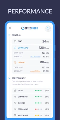 Even though our speed test is easy to run, simply measuring speed isn't that helpful if you don't know what the results are telling you. To make your internet speed results easier to understand, we give you a simple overview of how important internet services like email, web surfing, gaming, video streaming or chatting will perform for you.